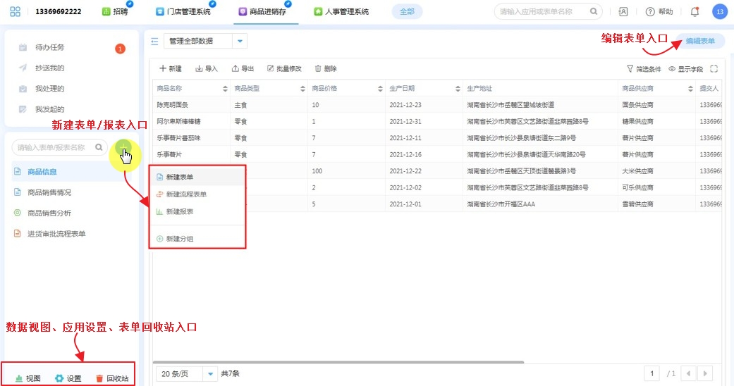 支持模糊搜索当前账号下所有表单/报表,以及应用。点击搜索结果即可访问。