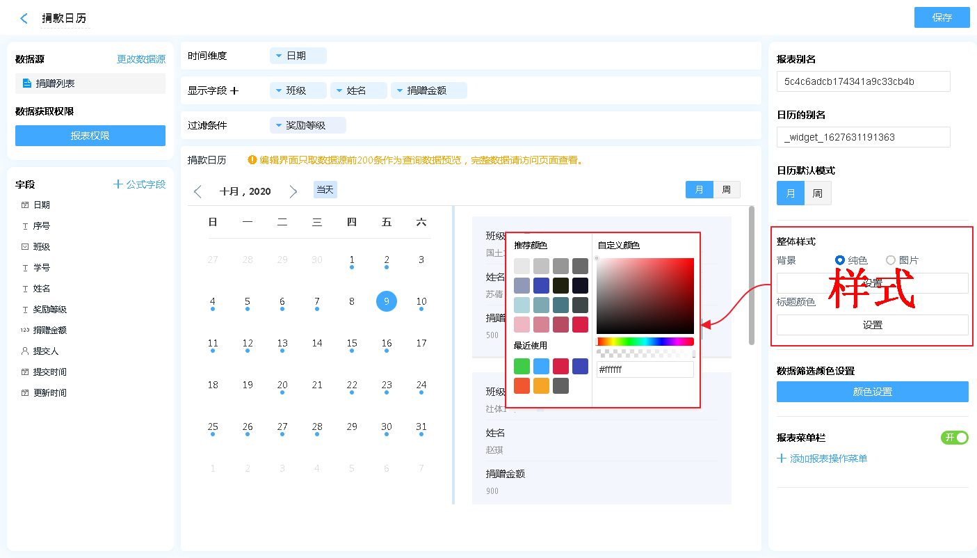 报表控件的整体风格,主要设置背景颜色/图片、标题颜色