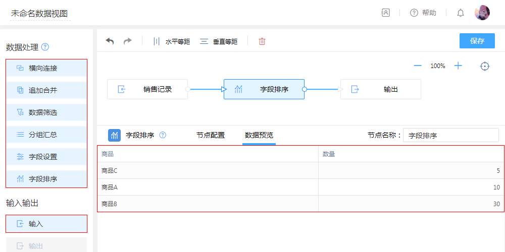 可以对数值字段,进行升降排序;如是文本则按ascii编码进行排序。